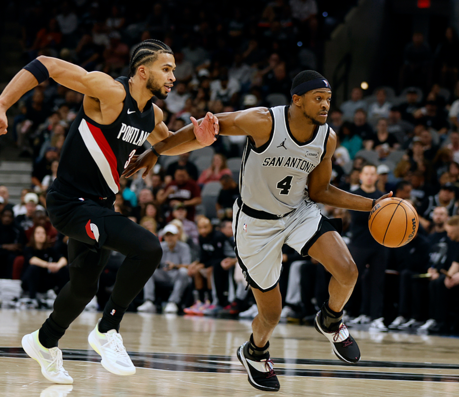 60胜19负的马刺主场迎战40胜39负的开拓者,马刺方面文班、卡斯尔缺阵,开拓者方面利拉德、夏普、格兰特缺阵,马刺优势明显,全场压制开拓者,一度领先17分,最终马刺112-101击败开拓者。福克斯20中10(三分6中3)得到25分5板7助3断、凯尔登15中8得到20分8板1助2断、哈珀14中6得到13分6板4助2断2帽,开拓者方面阿夫迪亚21中13得到29分6板6助、卡马拉12中7(三分8中4)得到18分4板6助3断、亨德森20中7得到20分3板2助3断。